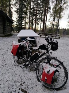 It was not only cold, a few days with melting snow during the day and even snow during the night were added. To keep most of my thing dry, a precise timing was needed to put up my tent in the evening and stowing it away in the morning. With a bit of luck that succeeded pretty well. As long as I could keep the wet clothes separated from the dry things all would be well.