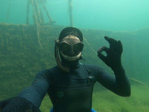 The diving spot is called “the underwater prison”, which is a great, catchy name. The closest part is not much more then 7m, so you don’t need the most advanced freediving skills, but even then it is breathtaking. On the one hand, there are the buildings, part of the wall and all human constructions, frozen in time. On the other hand there are trees everywhere, forming little underwater forests.